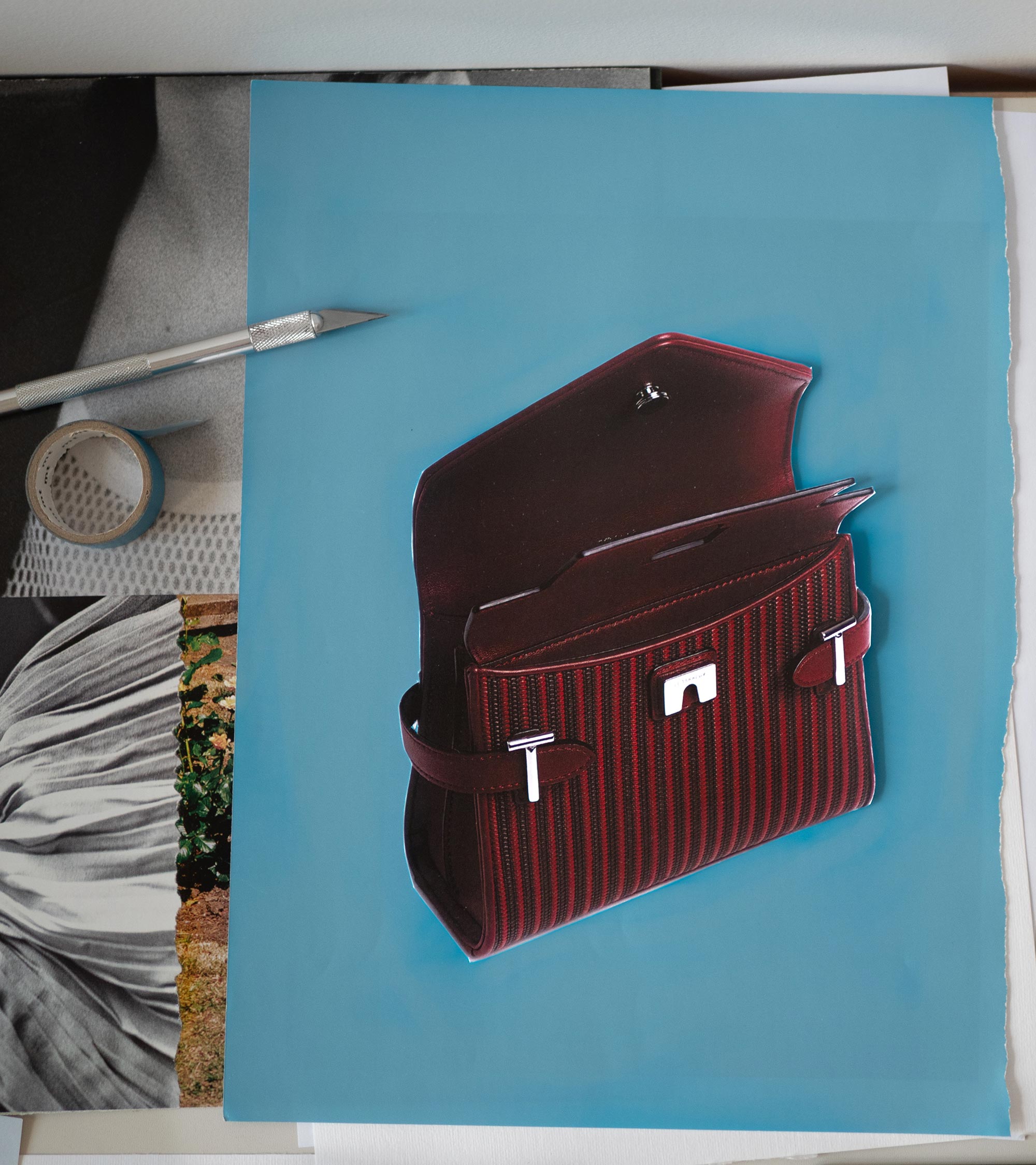 Si le dessin précède habituellement la fabrication, cette capsule a d’abord été imaginée à partir de cuirs existants, récupérés par Adapta auprès de maisons de luxe. Parmi eux, un cuir de veau tressé, initialement destiné à être détruit, trouve ici unenouvelle vie.