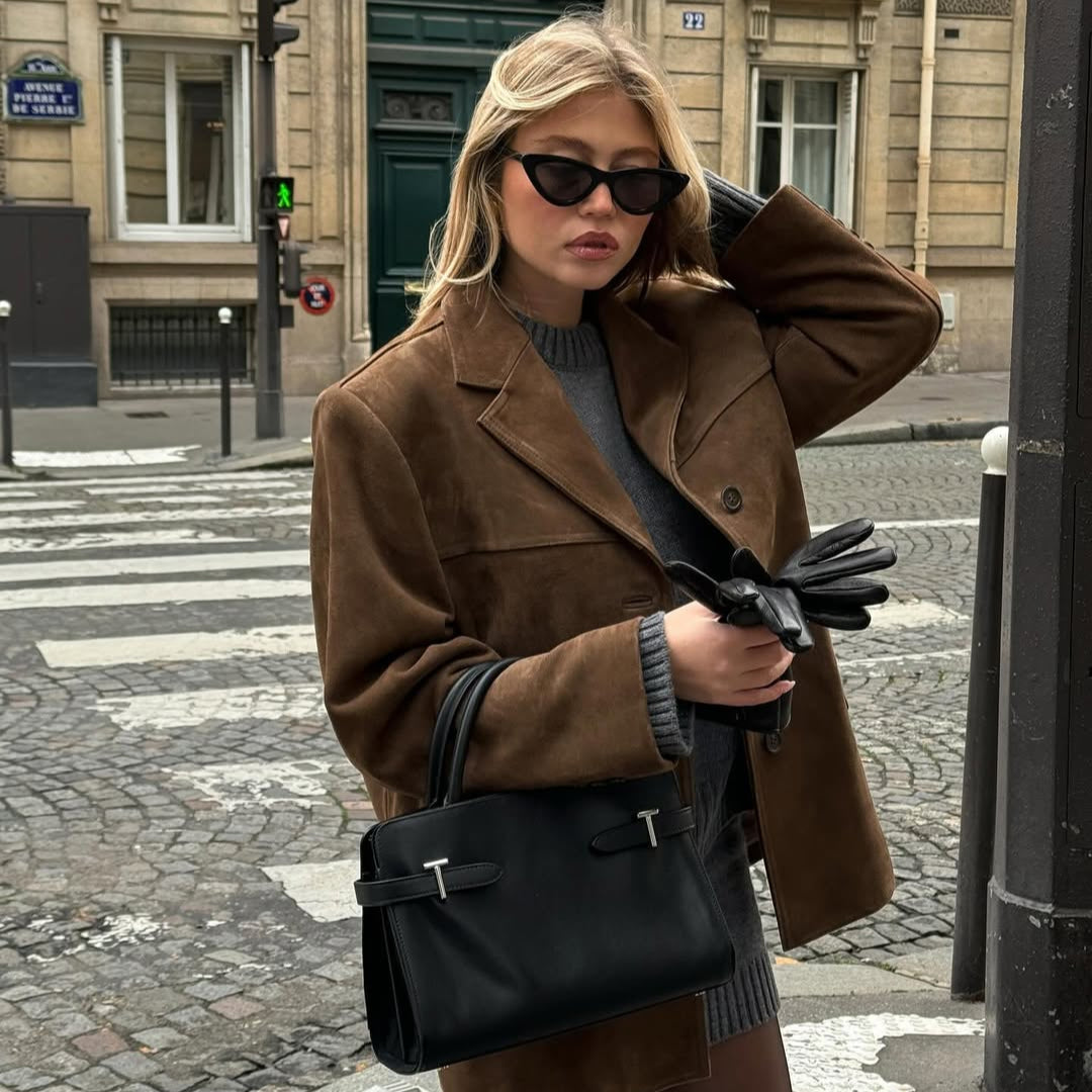 sac à main moyen modèle en cuir lisse et nubuck